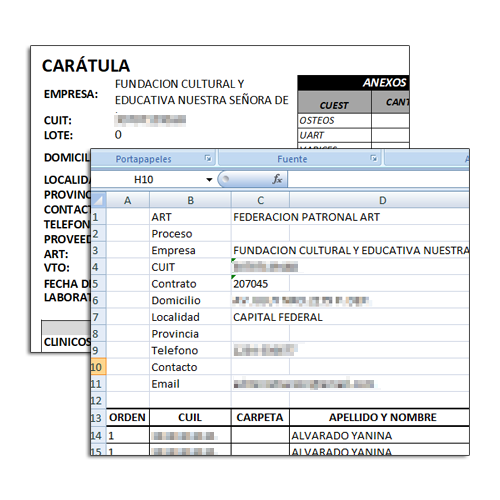 Genera formularios médicos personalizados con datos de la empresa y trabajadores. Compatible con formularios precargados o nuevos.