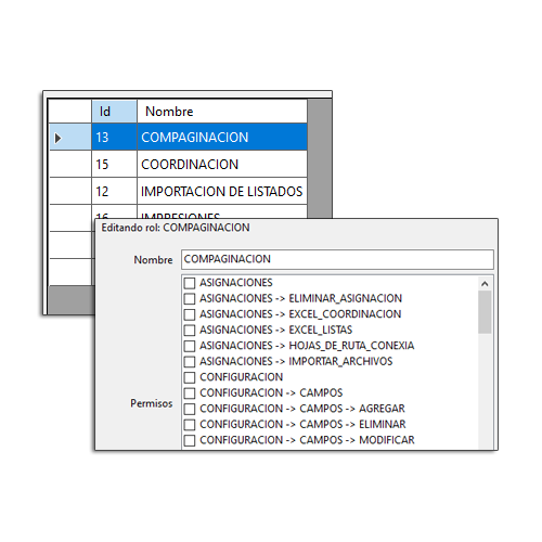 Para organizar correctamente las tareas de cada empleado, y por seguridad de los datos, cada usuario tiene un rol, y cada rol es personalizado con los permisos necesarios según las tareas que realiza y el grado de responsabilidad que tenga ese rol dentro del sistema.